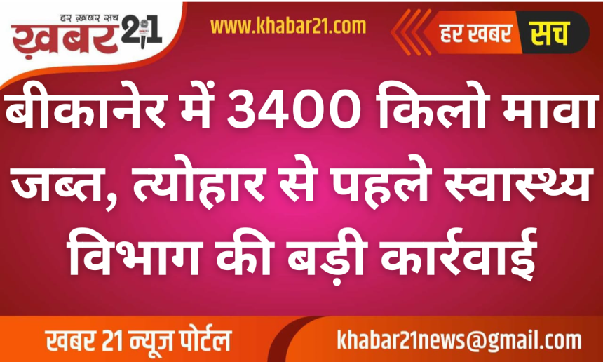 Khabar21 > Blog > बीकानेर > बीकानेर में 3400 किलो संदिग्ध मावा जब्त, त्योहार से पहले स्वास्थ्य विभाग की बड़ी कार्रवाई