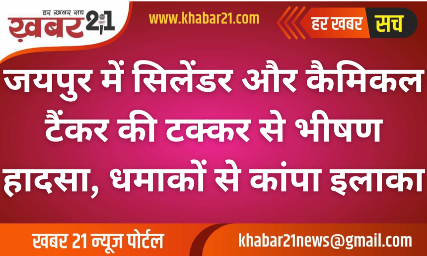 जयपुर: सावरदा पुलिया के पास मंगलवार रात हुए भीषण हादसे ने पूरे इलाके को दहला दिया। एक गैस सिलेंडरों से भरे ट्रक और केमिकल टैंकर की टक्कर के बाद लगी भीषण आग ने विकराल रूप ले लिया। चश्मदीदों के मुताबिक, टक्कर होते ही जबरदस्त धमाका हुआ और ट्रक कुछ ही पलों में आग के गोले में तब्दील हो गया। हादसे में अभी तक एक व्यक्ति की मौत की पुष्टि हुई है, जबकि कई अन्य लोग झुलस गए हैं।