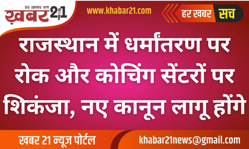 Khabar21 > Blog > राजस्थान > राजस्थान में धर्मांतरण पर रोक और कोचिंग सेंटरों पर शिकंजा, नए कानून लागू होंगे