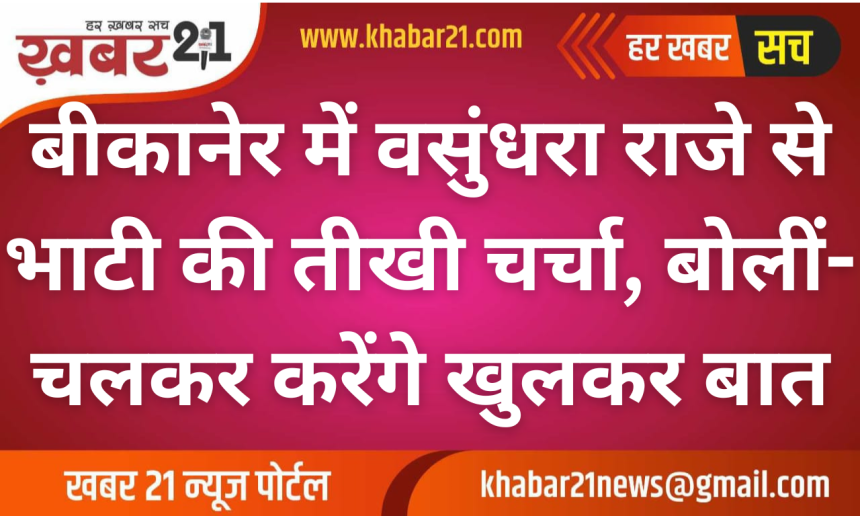 Khabar21 > Blog > बीकानेर > बीकानेर में वसुंधरा राजे से भाटी की तीखी चर्चा, बोलीं- चलकर करेंगे खुलकर बात