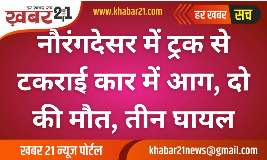 Khabar21 > Blog > बीकानेर > नौरंगदेसर में ट्रक से टकराई कार में आग, दो की मौत, तीन घायल