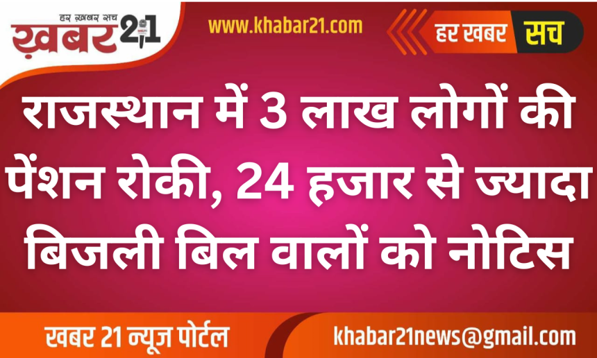 जयपुर। राजस्थान सरकार ने सामाजिक सुरक्षा पेंशन योजना के तहत अपात्र लाभार्थियों की पहचान करते हुए बड़ी कार्रवाई शुरू कर दी है। तीन लाख से अधिक पेंशनर्स की पेंशन फिलहाल रोक दी गई है, क्योंकि उनके सालाना बिजली बिल ₹24,000 से अधिक पाए गए हैं। इस आधार पर उनकी घोषित आय संदेह के घेरे में आ गई है।