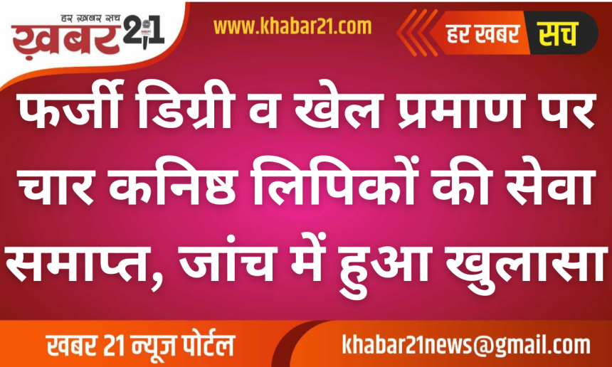 राजस्थान: फर्जी कंप्यूटर डिग्री और अमान्य खेल प्रमाण पत्र पर चार कनिष्ठ लिपिकों की सेवा समाप्त