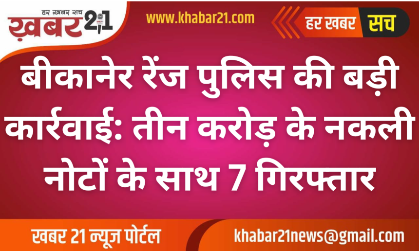 बीकानेर रेंज पुलिस ने अंतरराज्यीय ठगी गिरोह पर बड़ी कार्रवाई करते हुए करीब तीन करोड़ रुपये के नकली नोट, दो लग्जरी कारें, नकद राशि और ठगी के उपकरण बरामद किए हैं। पुलिस ने इस गिरोह के सात सदस्यों को गिरफ्तार किया है। सभी आरोपी हरियाणा निवासी हैं और लंबे समय से इस तरह की धोखाधड़ी में लिप्त थे। यह कार्रवाई आईजी हेमंत शर्मा के निर्देश पर, चूरू एजीटीएफ और कोतवाली पुलिस की संयुक्त टीम द्वारा की गई।