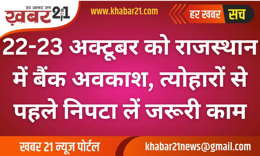 22 और 23 अक्टूबर को स्थानीय पर्वों के कारण बैंक अवकाश
