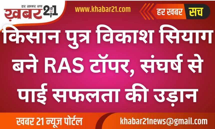 बीकानेर। कहते हैं कि सपनों की ऊंचाई आपकी परिस्थितियों की मोहताज नहीं होती—इसी बात को सच कर दिखाया है श्रीकोलायत क्षेत्र के छोटे से गांव के किसान पुत्र विकाश सियाग ने। सीमित संसाधनों और कठिन हालात के बावजूद उन्होंने राजस्थान प्रशासनिक सेवा (RAS) परीक्षा 2023 में टॉप 10 में जगह बनाकर इतिहास रच दिया।
