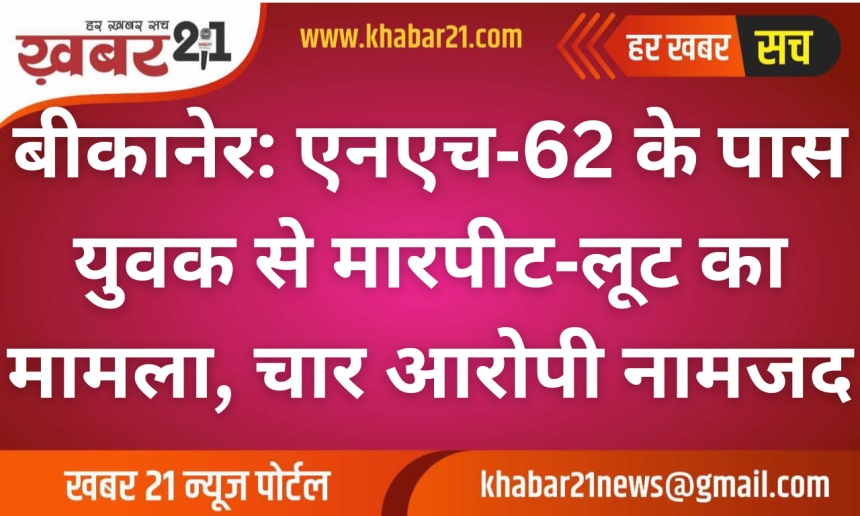 बीकानेर जिले के देशनोक थाना क्षेत्र अंतर्गत एनएच‑62 स्थित मरूधर फैक्ट्री के समीप एक युवक के साथ मारपीट कर नकदी व चांदी का कड़ा छीनने का मामला दर्ज हुआ है। पुलिस ने घटना की जानकारी देते हुए बताया कि यह घटना 20 अक्टूबर की शाम लगभग 7:30 बजे की है।