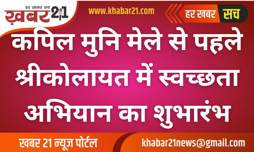 बीकानेर जिले के श्रीकोलायत में आगामी कार्तिक पूर्णिमा पर लगने वाले कपिल मुनि मेले की तैयारियाँ जोरों पर हैं। मेले से पहले मंदिर परिसर और आसपास के क्षेत्रों को स्वच्छ व आकर्षक बनाने के लिए भव्य स्वच्छता अभियान की शुरुआत आज से की गई।