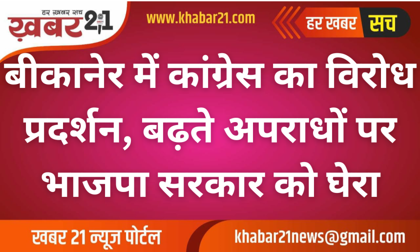 बीकानेर: राजस्थान में लगातार बढ़ते अपराधों और कमजोर कानून व्यवस्था को लेकर राजस्थान प्रदेश कांग्रेस कमेटी ओबीसी विभाग और राजस्थान प्रदेश कांग्रेस कमेटी चिकित्सा विभाग के संयुक्त तत्वावधान में शनिवार को बीकानेर में मौन व्रत आयोजित किया गया।