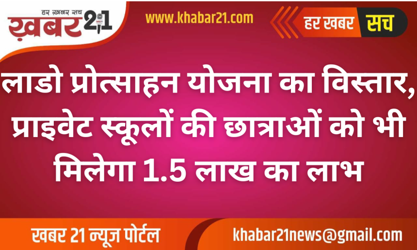 लाडो प्रोत्साहन योजना का विस्तार, प्राइवेट स्कूलों की छात्राओं को भी मिलेगा 1.5 लाख का लाभ