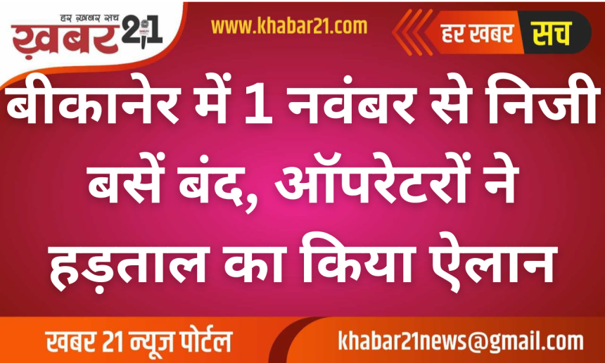 Khabar21 > Blog > बीकानेर > बीकानेर में 1 नवंबर से निजी बसें बंद, ऑपरेटरों ने हड़ताल का किया ऐलान