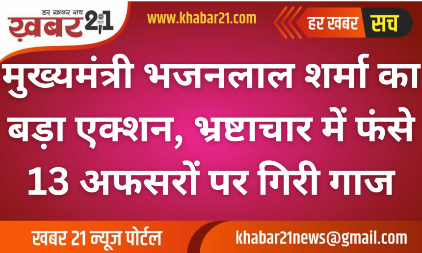 जयपुर। मुख्यमंत्री भजनलाल शर्मा ने राज्य प्रशासन में पारदर्शिता और सुशासन को मजबूत करने की दिशा में बड़ा कदम उठाया है। उन्होंने भ्रष्टाचार, लापरवाही और अनुशासनहीनता के मामलों में 13 सरकारी अधिकारियों पर अनुशासनात्मक कार्रवाई की है। यह निर्णय सरकार की “शून्य सहनशीलता नीति” को दर्शाता है।