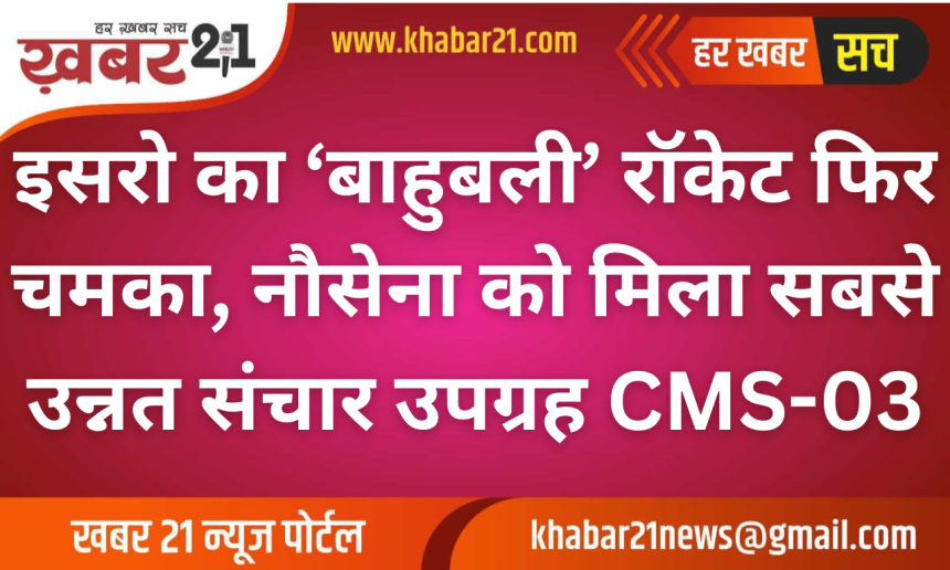 श्रीहरिकोटा। भारतीय अंतरिक्ष अनुसंधान संगठन (ISRO) ने एक बार फिर इतिहास रच दिया है। शनिवार को इसरो ने अपने सबसे शक्तिशाली रॉकेट एलवीएम3-एम5 (LVM3-M5) से सीएमएस-03 (CMS-03) संचार उपग्रह को सफलतापूर्वक लॉन्च किया। लगभग 4,400 किलोग्राम वजनी यह उपग्रह अब तक का भारत का सबसे भारी संचार उपग्रह है और विशेष रूप से भारतीय नौसेना के लिए तैयार किया गया है।