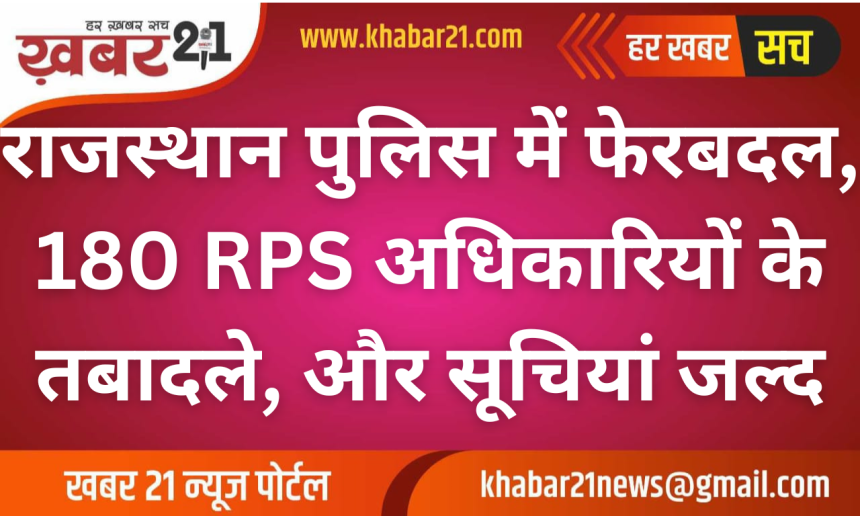 राजस्थान सरकार ने पुलिस विभाग में एक बार फिर बड़ा प्रशासनिक फेरबदल किया है। देर रात जारी आदेश के तहत 180 राजस्थान पुलिस सेवा (RPS) अधिकारियों का तबादला कर दिया गया है। यह आदेश गृह विभाग की ओर से जारी किया गया, जो तुरंत प्रभाव से लागू भी कर दिया गया है।