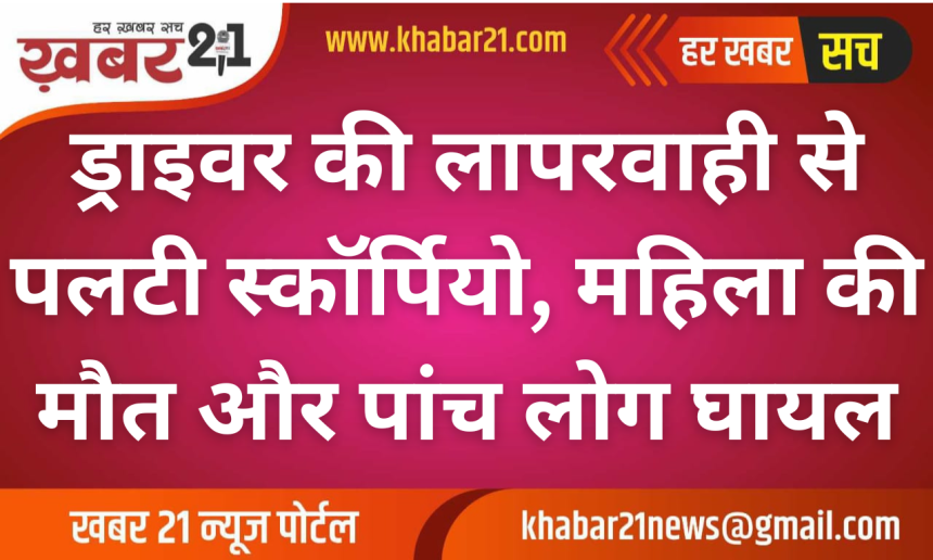 बीछवाल बाईपास पर हादसा: ड्राइवर की लापरवाही से पलटी स्कॉर्पियो, एक महिला की मौत