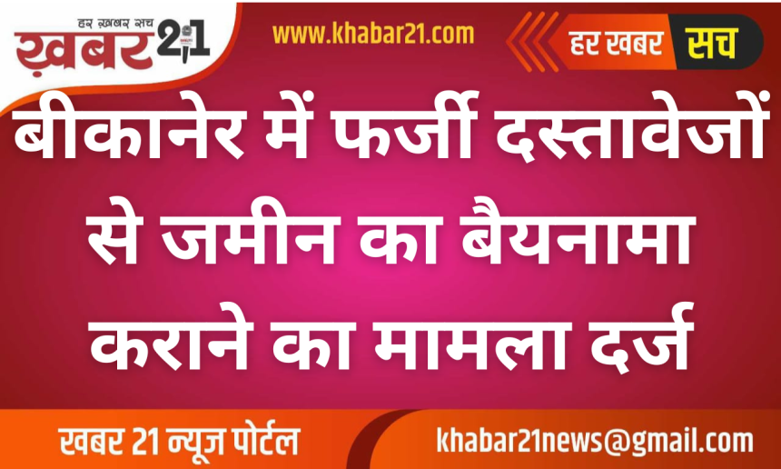 बीकानेर। शहर में एक बार फिर जमीन से जुड़ी धोखाधड़ी का मामला सामने आया है, जहां कुछ लोगों ने कथित तौर पर फर्जी दस्तावेज तैयार कर संपत्ति अपने नाम करवाने की कोशिश की। मामले में अंबेडकर कॉलोनी निवासी भवानी सिंह ने कई व्यक्तियों के खिलाफ पुलिस में शिकायत दर्ज कराई है।
