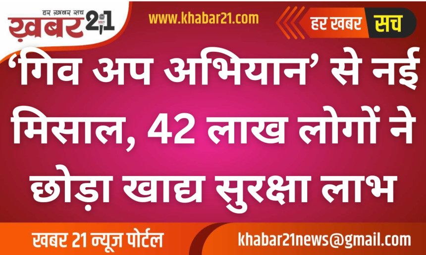 Khabar21 > Blog > राजस्थान > ‘गिव अप अभियान’ से नई मिसाल, 42 लाख लोगों ने छोड़ा खाद्य सुरक्षा लाभ