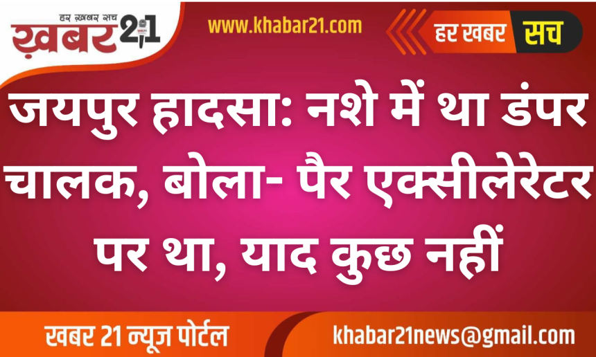 Khabar21 > Blog > जयपुर > जयपुर हादसा: नशे में था डंपर चालक, बोला- पैर एक्सीलेरेटर पर था, याद कुछ नहीं