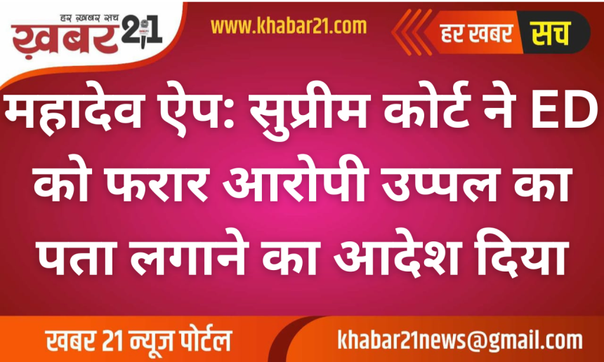 Khabar21 > Blog > देश-दुनिया > महादेव ऐप: सुप्रीम कोर्ट ने ईडी को फरार आरोपी उप्पल का पता लगाने का आदेश दिया