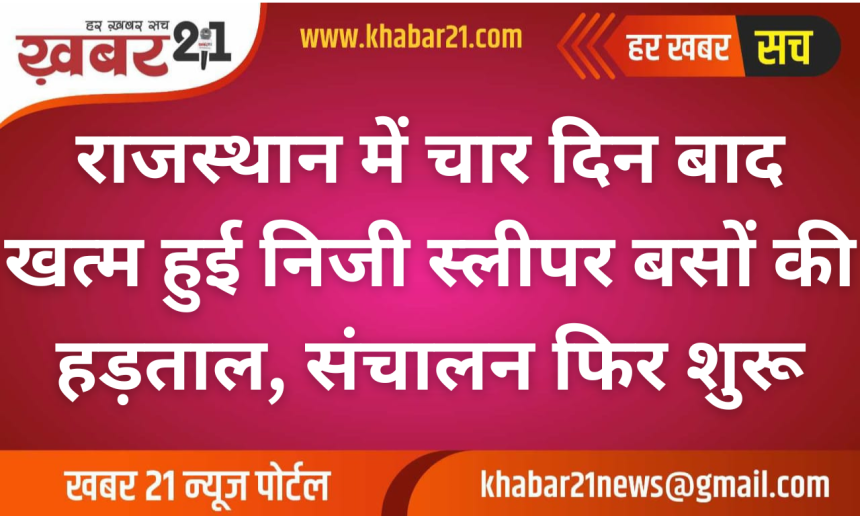 Khabar21 > Blog > राजस्थान > राजस्थान में चार दिन बाद खत्म हुई निजी स्लीपर बसों की हड़ताल, संचालन फिर शुरू