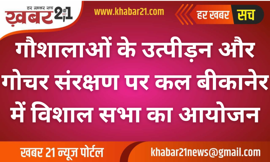 बीकानेर के मुरली मनोहर मैदान, भीनासर में 7 नवंबर को संभाग स्तरीय विशाल गौशाला संचालक सभा आयोजित की जाएगी।