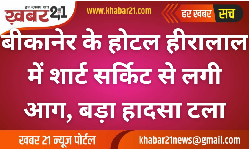 बीकानेर — जेएनवीसी क्षेत्र स्थित होटल हीरालाल के रेस्टोरेंट हिस्से में एसी में शार्ट सर्किट होने से आग लग गई। अचानक उठे धुएं और लपटों से होटल परिसर में अफरा-तफरी मच गई।
