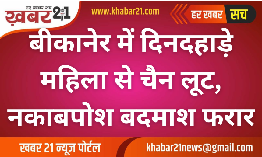 Khabar21 > Blog > बीकानेर > बीकानेर में दिनदहाड़े महिला से चैन लूट, नकाबपोश बदमाश फरार