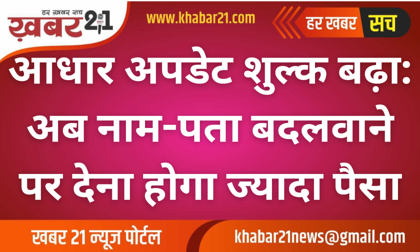 आधार कार्ड से जुड़ी सेवाओं का उपयोग करने वाले लोगों के लिए एक अहम अपडेट सामने आया है। भारतीय विशिष्ट पहचान प्राधिकरण (UIDAI) ने आधार से संबंधित संशोधन सेवाओं के शुल्क में वृद्धि की है। अब नाम, पता, जन्मतिथि, मोबाइल नंबर या फोटो जैसी जानकारी अपडेट करवाने पर पहले से अधिक शुल्क देना होगा।
