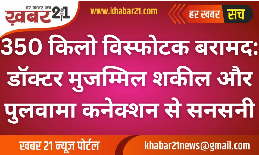 दिल्ली से सटे हरियाणा के फरीदाबाद जिले में सुरक्षा एजेंसियों ने एक बड़ी आतंकी साजिश का पर्दाफाश किया है। जांच में सामने आया है कि इस साजिश के केंद्र में डॉक्टर मुजम्मिल शकील नाम का व्यक्ति है, जो जम्मू-कश्मीर के पुलवामा जिले का रहने वाला बताया जा रहा है। पुलिस ने उसके किराए के कमरे से 350 किलो अमोनियम नाइट्रेट, दो राइफलें, तीन मैगजीन, कई टाइमर, बैटरियां और अन्य संदिग्ध सामग्री बरामद की है।