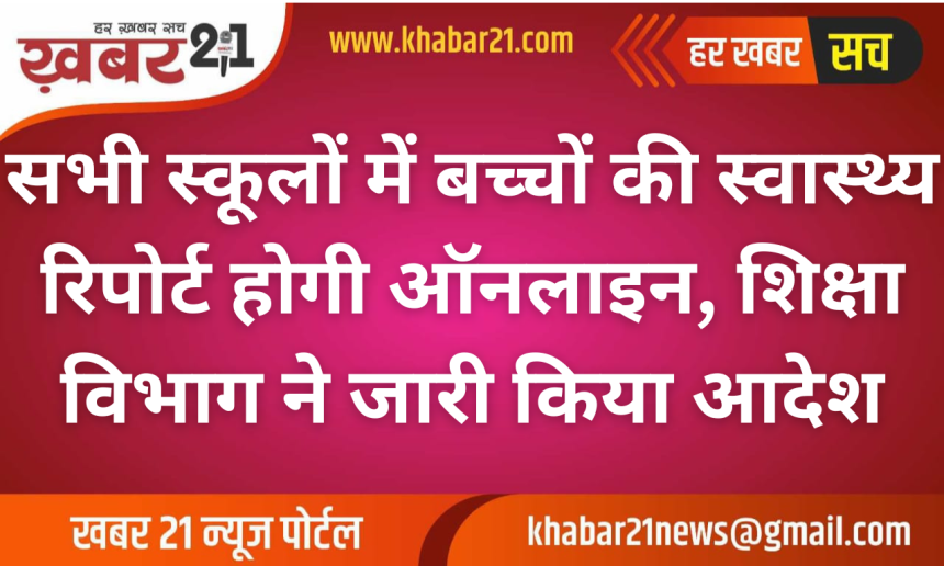 Khabar21 > Blog > राजस्थान > सभी स्कूलों में बच्चों की स्वास्थ्य रिपोर्ट होगी ऑनलाइन, शिक्षा विभाग ने जारी किया आदेश
