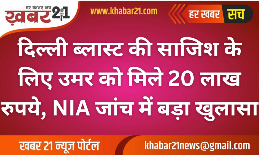 दिल्ली के लाल किले के पास हुए कार धमाके की जांच में राष्ट्रीय जांच एजेंसी (NIA) को बड़ा सुराग मिला है। जांच में खुलासा हुआ है कि डॉ. उमर नबी मोहम्मद और उसके साथियों ने इस विस्फोट की साजिश को अंजाम देने के लिए करीब 20 लाख रुपये जुटाए थे।