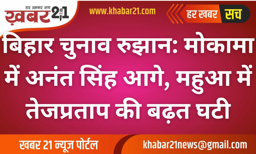 पटना जिले की मोकामा सीट से जदयू उम्मीदवार अनंत सिंह अपने निकटतम प्रतिद्वंद्वी राजद की वीणा देवी पर बढ़त बनाए हुए हैं। शुरुआती अंतर लगभग 700 वोट का बताया जा रहा है। स्थानीय स्तर पर यह मुकाबला हमेशा से ही चर्चाओं में रहा है, और इस बार भी रुझान राजनीतिक समीकरणों को दिलचस्प बना रहे हैं।