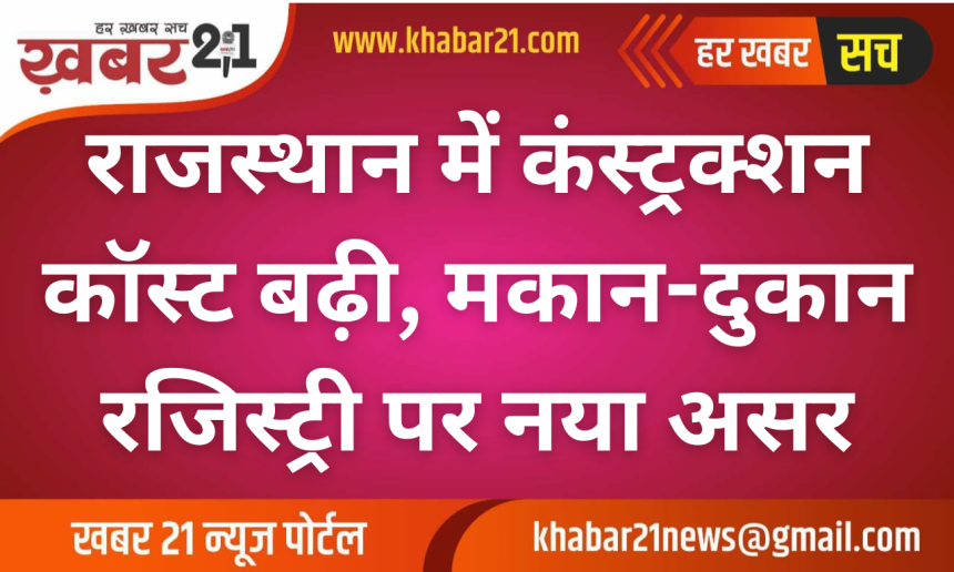 राजस्थान सरकार ने संपत्ति पंजीकरण से जुड़ी लागतों में महत्वपूर्ण बदलाव करते हुए इस वर्ष स्टांप ड्यूटी, रजिस्ट्रेशन शुल्क और डीएलसी दरों को यथावत रखा है, लेकिन कंस्ट्रक्शन कॉस्ट में बड़ा इजाफा किया है। इस निर्णय का असर विशेष रूप से उन मामलों में दिखाई देगा, जहां किसी जमीन पर निर्माण की लागत को आधार मानकर रजिस्ट्री होती है।