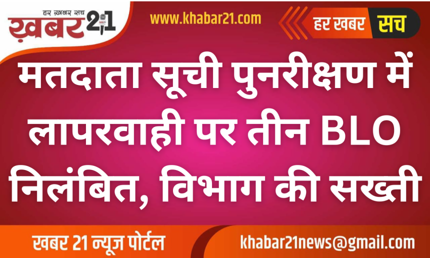 Reading: मतदाता सूची पुनरीक्षण में लापरवाही पर तीन BLO निलंबित, विभाग की सख्ती
