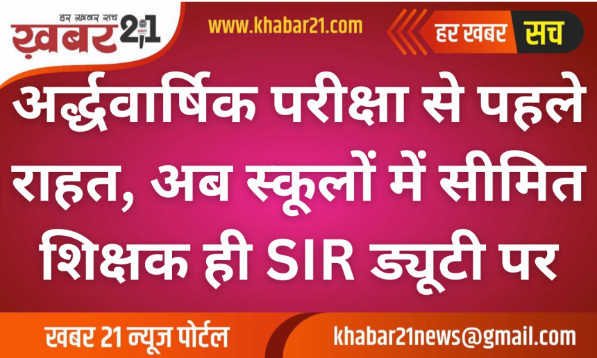 Khabar21 > Blog > बीकानेर > अर्द्धवार्षिक परीक्षा से पहले राहत, अब स्कूलों में सीमित शिक्षक ही SIR ड्यूटी पर