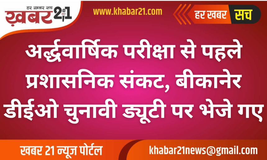 Khabar21 > Blog > बीकानेर > अर्द्धवार्षिक परीक्षा से पहले प्रशासनिक संकट, बीकानेर डीईओ चुनावी ड्यूटी पर भेजे गए