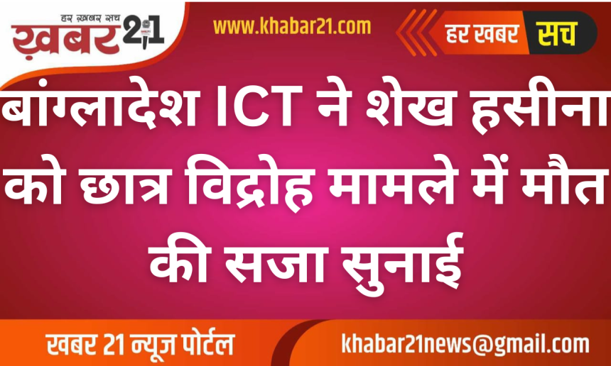 बांग्लादेश की पूर्व प्रधानमंत्री शेख हसीना को लेकर एक बड़ा घटनाक्रम सामने आया है। अंतरराष्ट्रीय अपराध ट्रिब्यूनल (ICT) ने उपलब्ध दस्तावेजों और गवाहियों के आधार पर जुलाई 2024 के छात्र-नेतृत्व वाले विद्रोह में कथित मानवता-विरोधी अपराधों का दोषी ठहराते हुए उन्हें मौत की सजा सुनाई है। अदालत ने 17 नवंबर 2025 को जारी 458 पृष्ठों के फैसले में कहा कि उस अवधि में शांतिपूर्ण और निहत्थे प्रदर्शनकारियों पर बल प्रयोग करने की अनुमति देने में हसीना की मुख्य भूमिका थी।