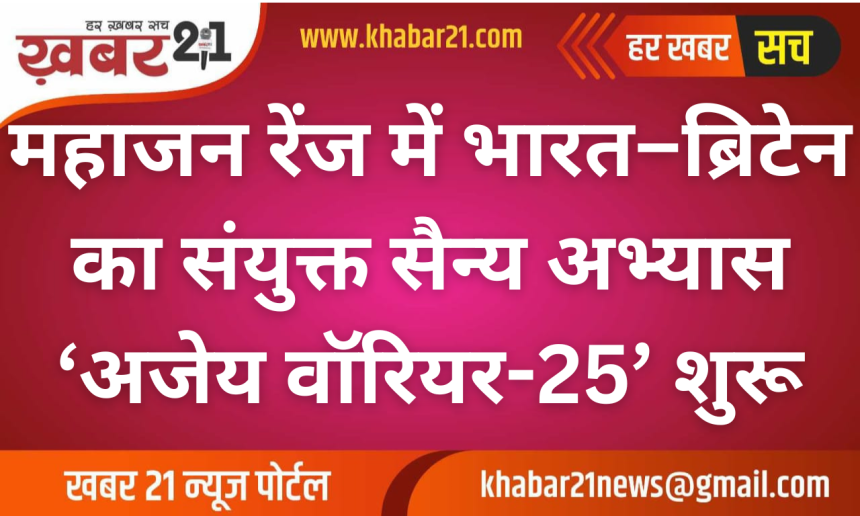 राजस्थान के महाजन फील्ड फायरिंग रेंज स्थित फॉरेन ट्रेनिंग नोड में सोमवार को भारत और यूनाइटेड किंगडम के बीच संयुक्त सैन्य प्रशिक्षण अभ्यास ‘अजेय वॉरियर-25’ का आठवां संस्करण औपचारिक रूप से शुरू हुआ। 17 से 30 नवंबर 2025 तक चलने वाले इस द्विवार्षिक अंतरराष्ट्रीय अभ्यास का उद्घाटन पारंपरिक विस्फोटक सिग्नल के साथ किया गया।