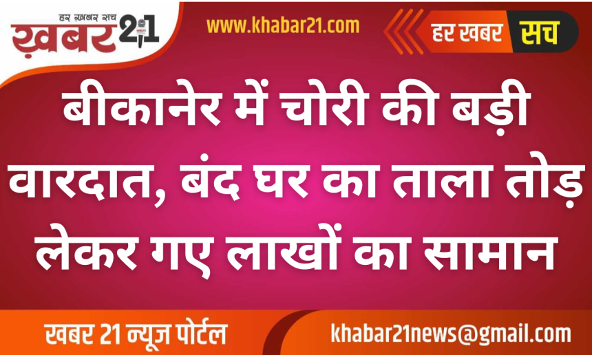 बीकानेर जिले में चोरी की घटनाएं लगातार बढ़ रही हैं और पुलिस की निगरानी पर गंभीर सवाल खड़े हो रहे हैं। शादी के सीजन में सक्रिय चोर गिरोह लगातार वारदातें कर रहे हैं, जिससे आमजन में भय का माहौल बना हुआ है। ताजा मामला नयाशहर थाना क्षेत्र से सामने आया है, जहां चोरों ने एक बंद मकान को निशाना बनाकर लाखों के जेवरात और नकदी चोरी कर ली।