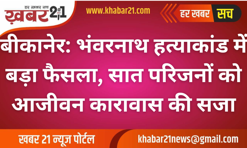 बीकानेर जिले के बम्बलू गांव में 11 वर्ष पुराने भंवरनाथ हत्याकांड पर अदालत ने सोमवार को महत्वपूर्ण फैसला सुनाते हुए एक ही परिवार के सात सदस्यों को आजीवन कारावास की सजा दी। अतिरिक्त जिला एवं सत्र न्यायाधीश की अदालत ने सभी दोषियों पर 22-22 हजार रुपये का अर्थदंड भी लगाया। निर्धारित राशि जमा न करने पर उन्हें छह महीने का अतिरिक्त कठोर कारावास भुगतना होगा।