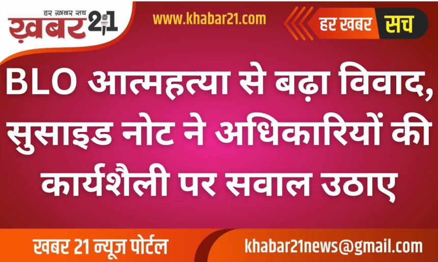 Khabar21 > Blog > बीकानेर > BLO आत्महत्या से बढ़ा विवाद, सुसाइड नोट ने अधिकारियों की कार्यशैली पर सवाल उठाए