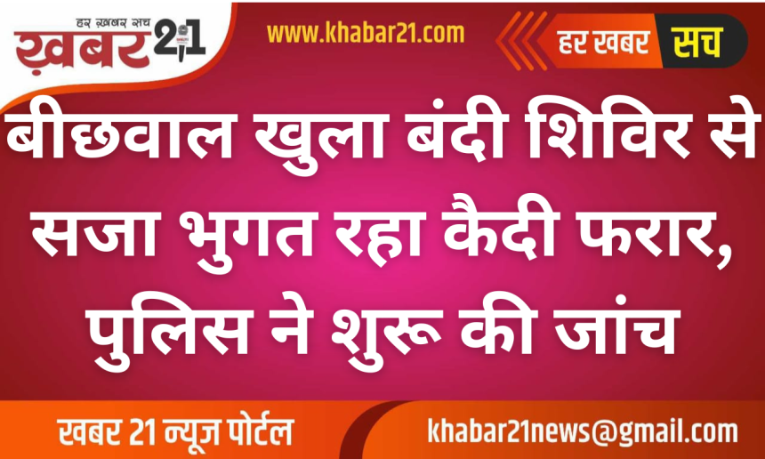 बीकानेर के बीछवाल क्षेत्र स्थित खुला बंदी शिविर से एक दंडित बंदी के फरार हो जाने का मामला सामने आया है। घटना 17 नवंबर की सुबह लगभग 7 बजे की बताई जा रही है। इस संबंध में मुख्य प्रहरी कुलदीप सिंह ने बीछवाल थाने में आधिकारिक शिकायत दर्ज करवाकर कार्रवाई की मांग की है।