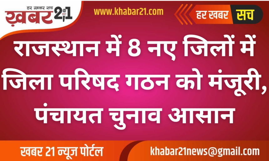 Khabar21 > Blog > राजस्थान > राजस्थान में 8 नए जिलों में जिला परिषद गठन को मंजूरी, पंचायत चुनाव आसान