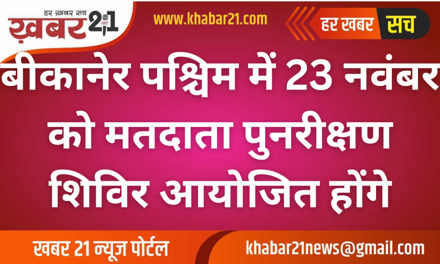 Khabar21 > Blog > बीकानेर > बीकानेर पश्चिम में 23 नवंबर को मतदाता पुनरीक्षण शिविर आयोजित होंगे