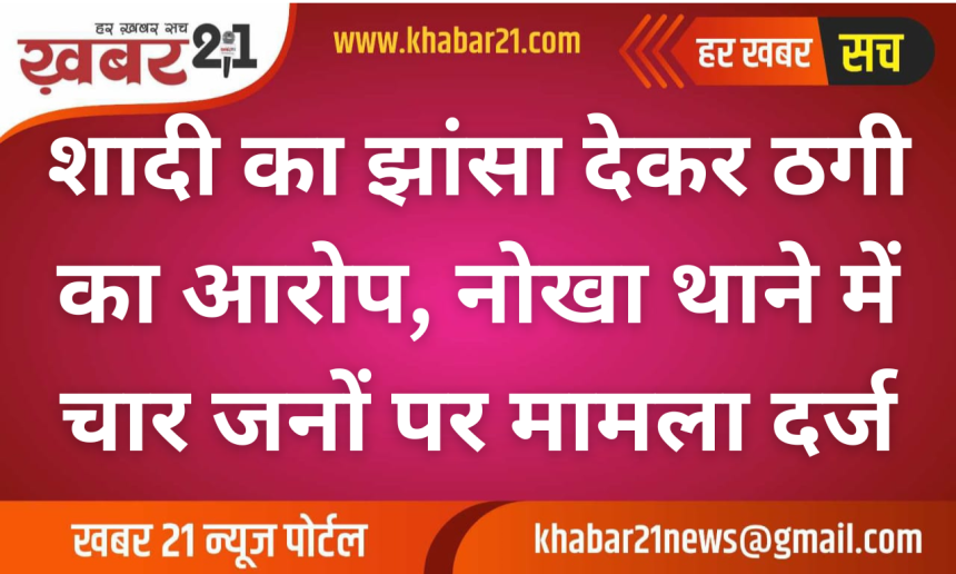 नोखा थाना क्षेत्र में शादी का झांसा देकर ठगी करने का एक नया मामला दर्ज हुआ है। पुलिस के अनुसार, लखारा शिव मंदिर के पास रहने वाले कमल लखारा ने पंजाब निवासी पुनम पुत्र भूपराम, मालचंद पुत्र फरसाराम, नीतू पत्नी मालचंद और पंजाब के ही भूपराम के खिलाफ गंभीर आरोप लगाते हुए प्राथमिकी दर्ज करवाई है।
