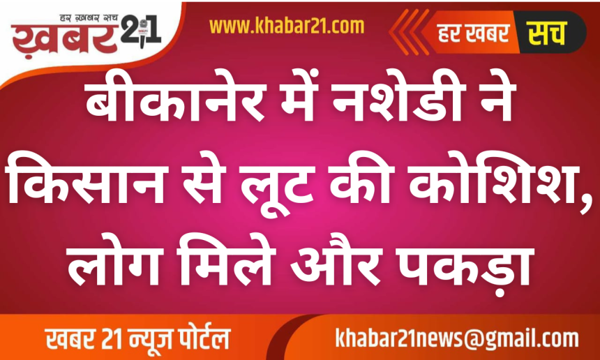 बीकानेर: शहर के रोडवेज बस स्टैंड के सामने अक्षय होटल के पास एक नशेड़ी द्वारा किसान से लूट की कोशिश की गई, जिसे आसपास के लोगों की सतर्कता ने नाकाम कर दिया।