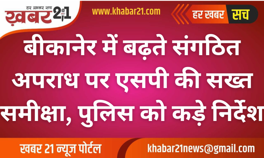 बीकानेर शहर में हाल के दिनों में संगठित अपराध की घटनाओं में लगातार बढ़ोतरी देखी जा रही है, जिससे शहर में असुरक्षा का माहौल बन गया है। स्थिति की गंभीरता को देखते हुए जिला पुलिस ने कड़ा रुख अपनाया है। इसी क्रम में पुलिस अधीक्षक कावेन्द्र सिंह सागर ने शनिवार को जिले के सभी थानाधिकारियों और उच्च अधिकारियों की विशेष क्राइम मीटिंग बुलाई।