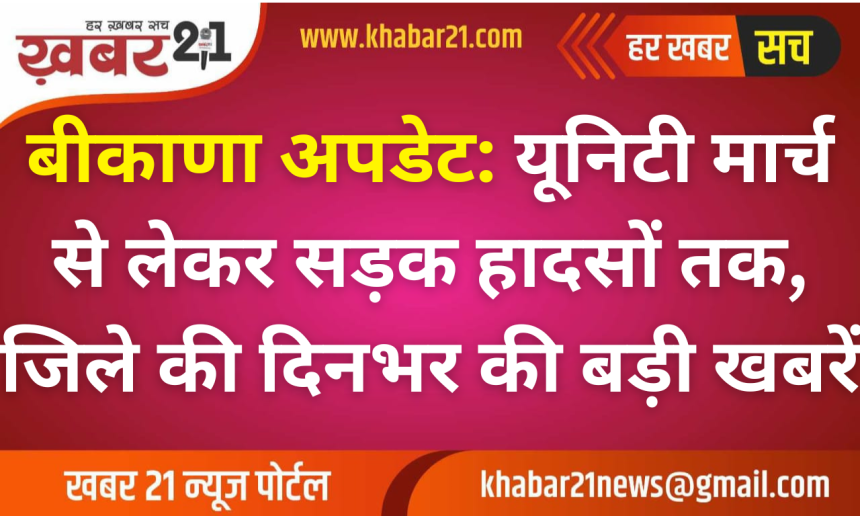 बीकानेर जिले से आज कई महत्वपूर्ण घटनाएं सामने आईं—राष्ट्रीय स्तर की यात्राओं से लेकर सामाजिक पहल, सड़क हादसे, पुलिस गश्त, निर्माण कार्य और आपराधिक मामलों तक। यहां पढ़ें दिनभर की बड़ी और प्रभावी खबरें, पूरी तरह मानवीय शैली में और नए अंदाज में लिखी हुई।