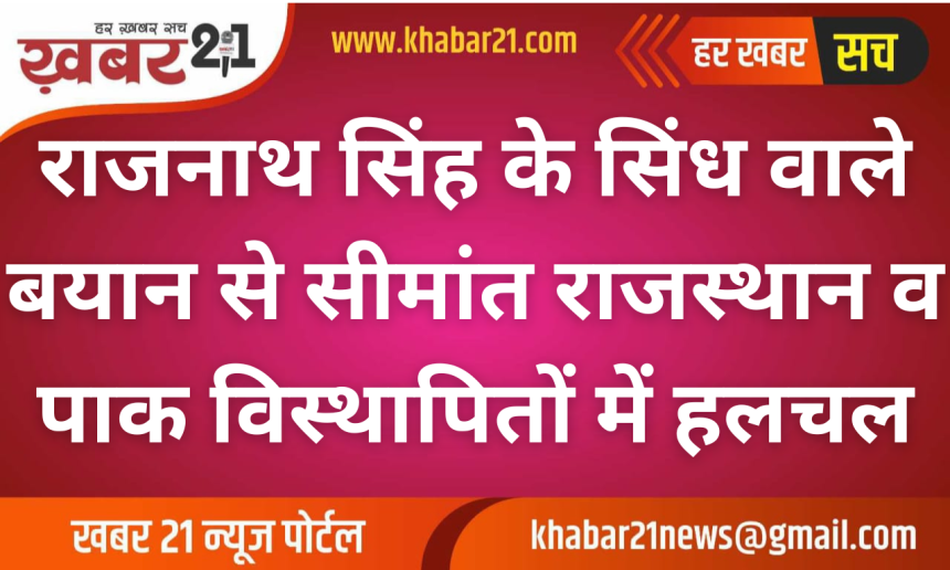 Khabar21 > Blog > देश-दुनिया > राजनाथ सिंह के सिंध वाले बयान से सीमांत राजस्थान व पाक विस्थापितों में हलचल
