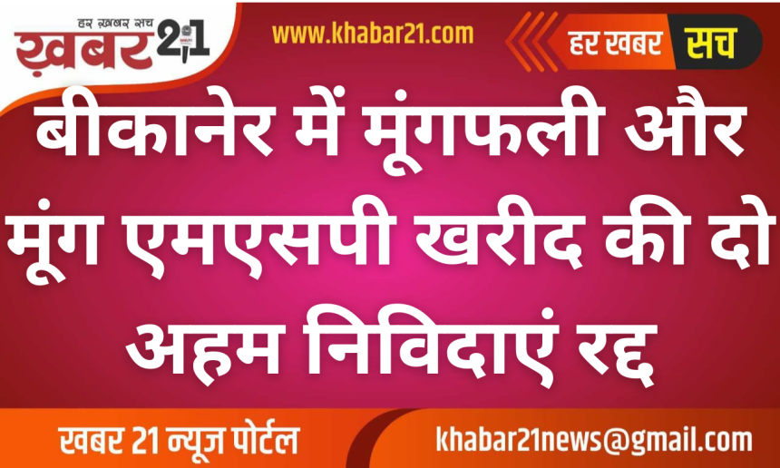 बीकानेर जिले में मूंगफली और मूंग की एमएसपी खरीद से जुड़ी दो महत्वपूर्ण निविदाओं को रद्द कर दिया गया है। श्रीडूंगरगढ़ और बीकानेर खरीद केंद्रों पर हैंडलिंग व परिवहन कार्य के लिए जारी ये निविदाएं लंबे समय से विवादों में थीं। सोमवार को सहकार भवन में हुई निविदा कमेटी की बैठक में सर्वसम्मति से इन्हें निरस्त करने का निर्णय लिया गया।